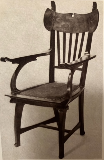 Le galbe du dossier ainsi que les éléments décoratifs de celui-ci, annoncent déjà les formes reprises dès 1897 sur les chaises exposées à la galerie Hohenzolern à Berlin ( chaise « aux flèches renversées »), ou encore à Paris dans salon de l’hôtel Chatham la même année.