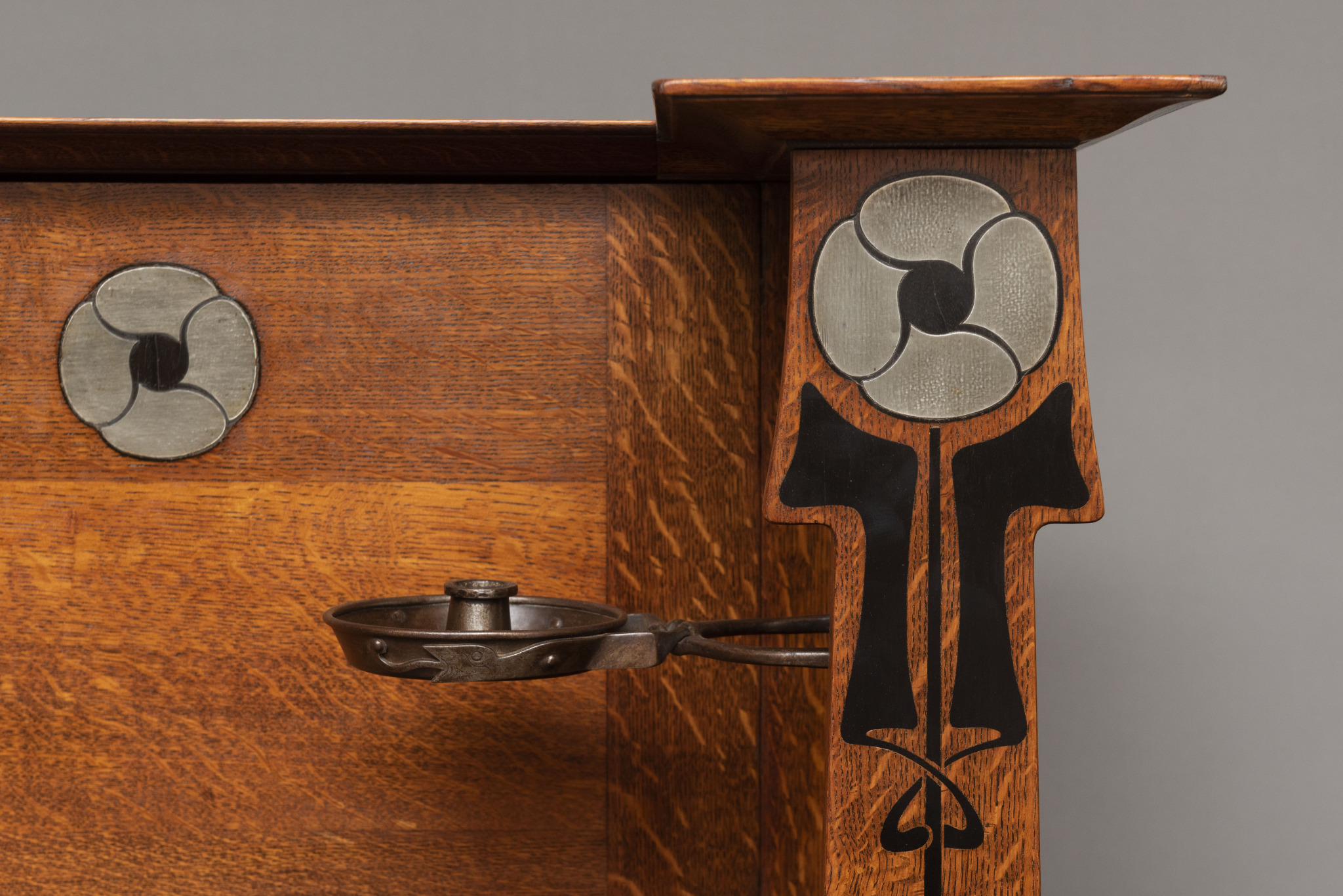 Chêne, marqueterie d’ébène, zinc et fer.