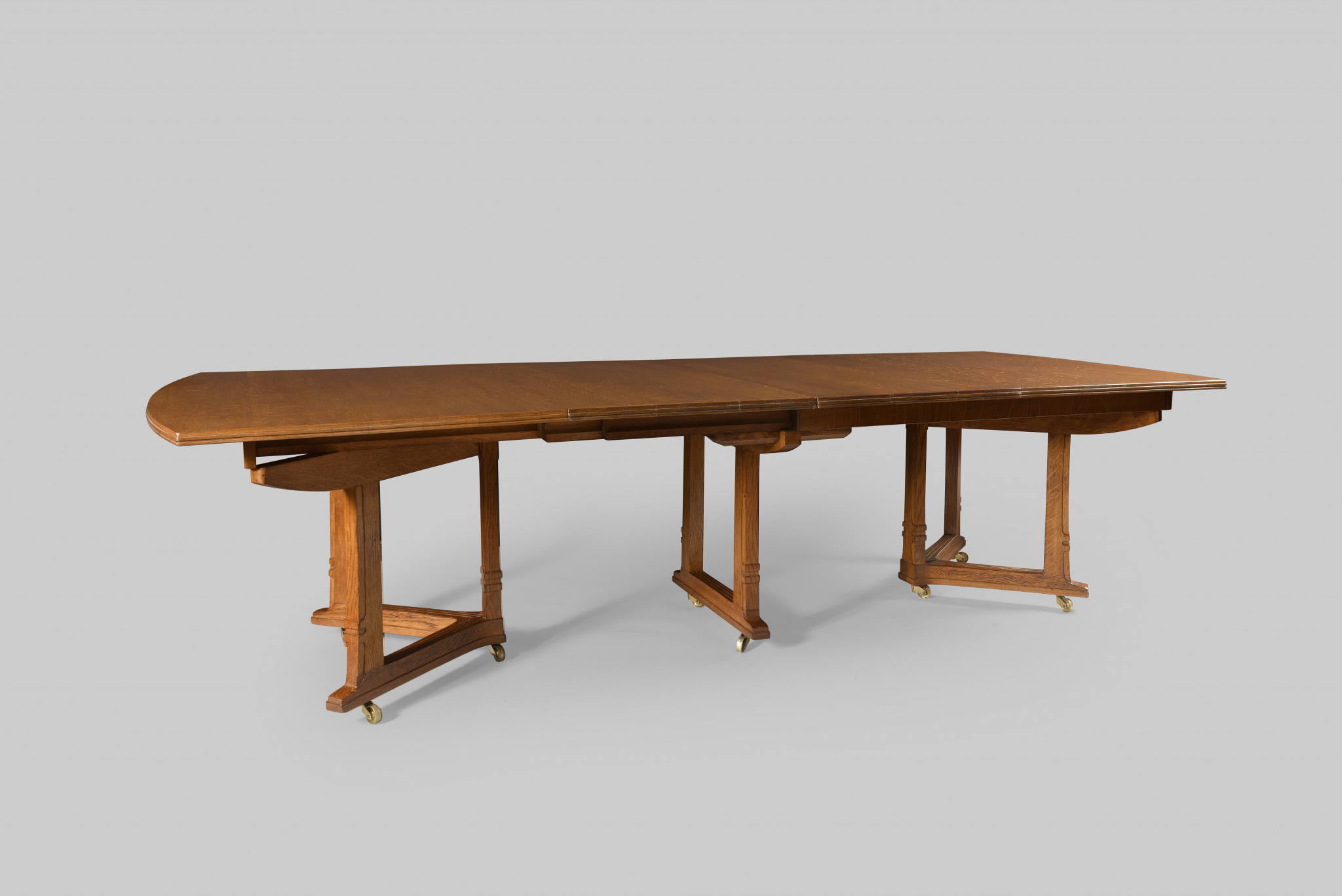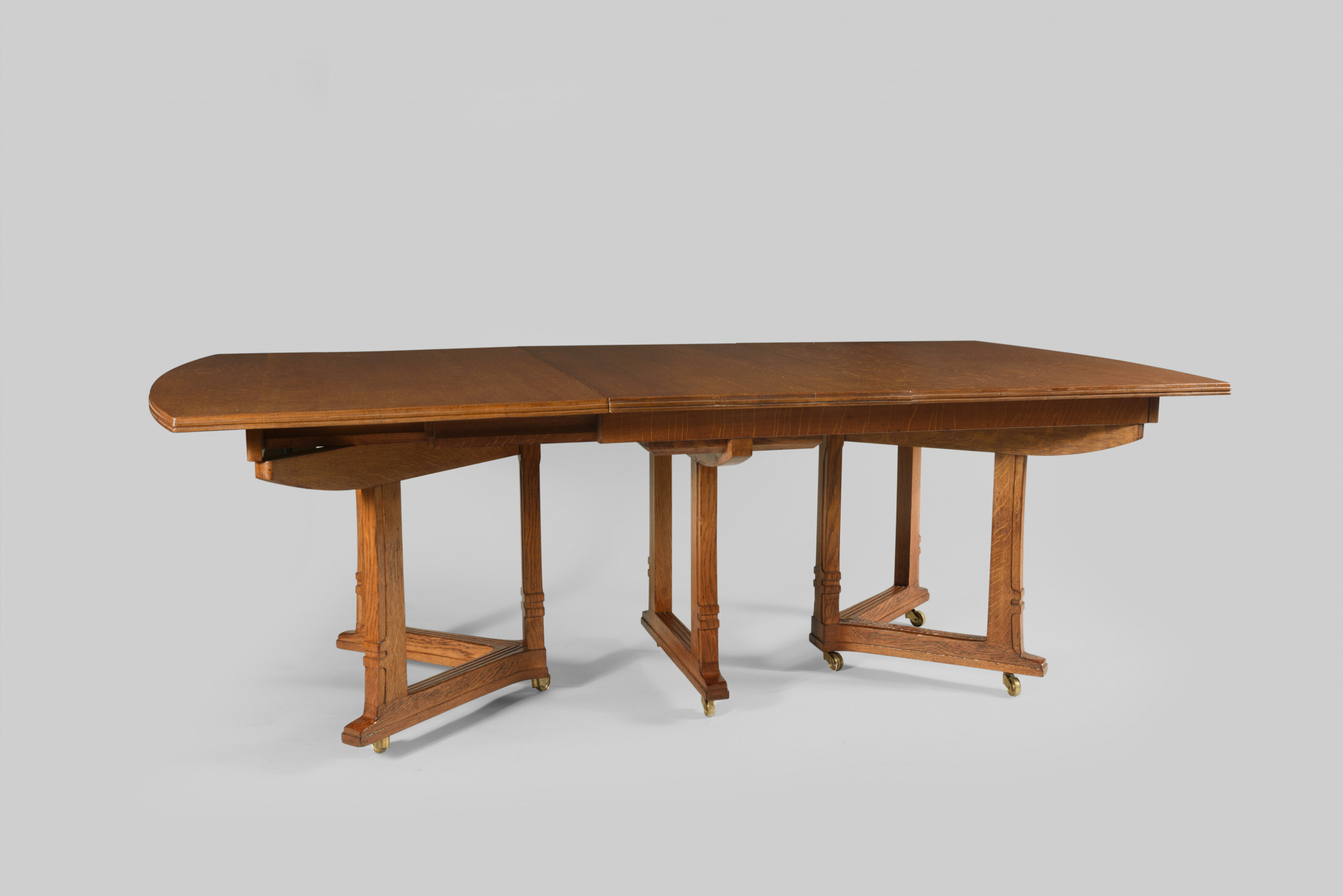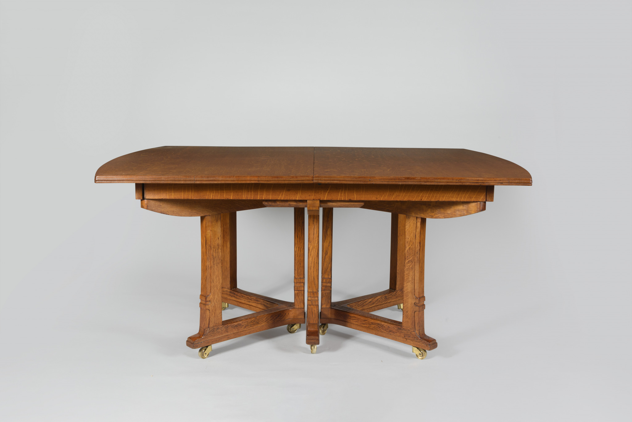 Le dessin audacieux des pieds en forme de boule, présent encore mais diminué sur la série table et chaise Hohenzolern de 1897,ou encore sur la table de la chambre Artisan de 1895. nous montre un Gustave Serrurier en pleine recherche et mutation.