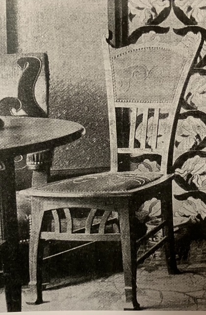 Le galbe du dossier ainsi que les éléments décoratifs de celui-ci, annoncent déjà les formes reprises dès 1897 sur les chaises exposées à la galerie Hohenzolern à Berlin ( chaise « aux flèches renversées »), ou encore à Paris dans salon de l’hôtel Chatham la même année.