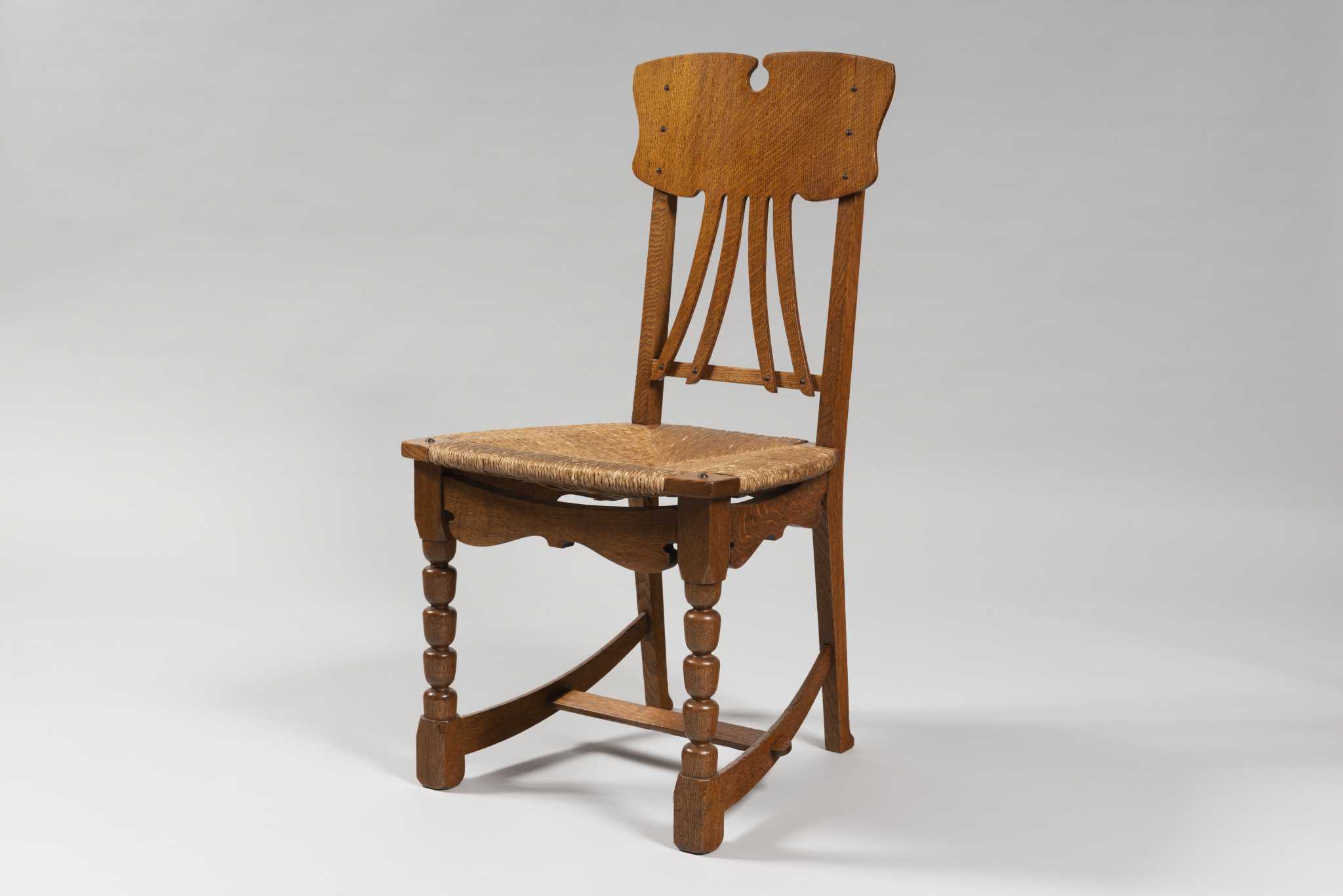 Chêne et assise en paille tressée c. 1895 Variante du modèle de la chambre Artisan du Salon de la Libre Esthétique de 1895.