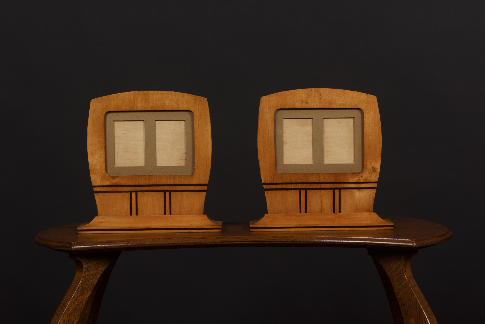Ces deux porte-photos en érable soulignent l’influence décorative et stylistique qu’aura René Dulong sur Gustave Serrurier durant cette période.