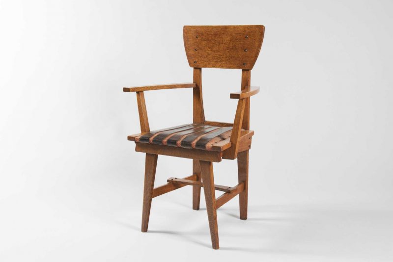 Chêne , vises en fer, garnissage d’origine cuire et tissu