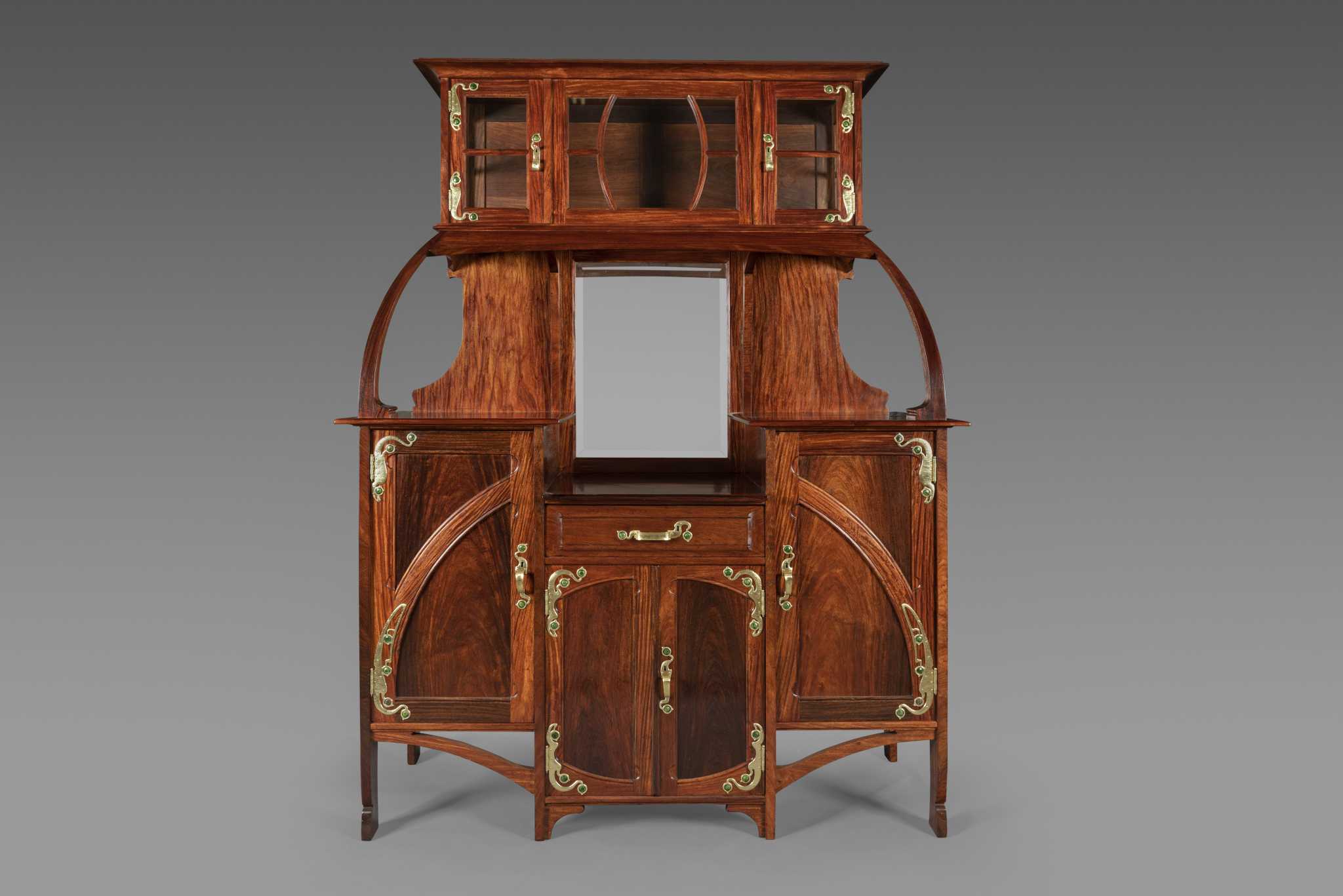 Padouk, laiton et émail vert Modèle réalisé pour la salle à manger d’Albert Bauwens 1897 H_220 cm L_170 cm P_65 cm